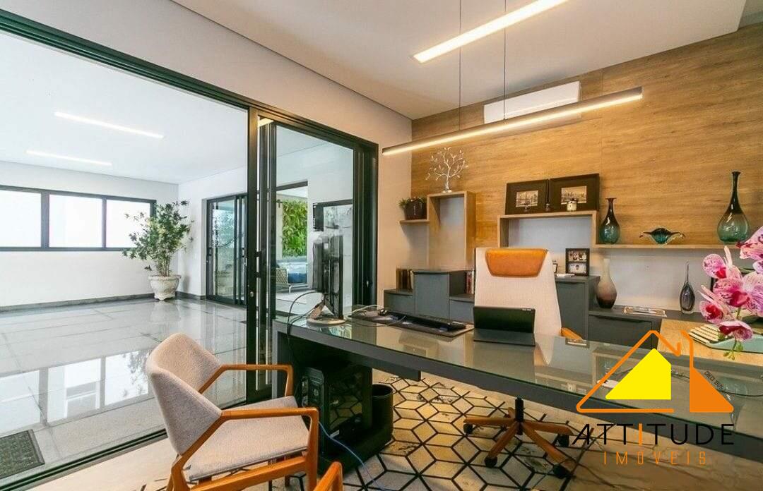 04 suítes planejadas, sendo 01 master com closet, banheiro social, sala ampla para 02 ambientes, home theater, escritórios, lavabo, cozinha planejada, área de serviço, dependência de empregada, gás encanado e 08 vagas de garagem. Possui área de lazer com churrasqueira, piscina com hidromassagem e borda infinita, academia, salão de festas, cinema.